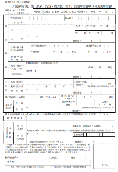 要介護認定の申請用紙はこのようになっています。