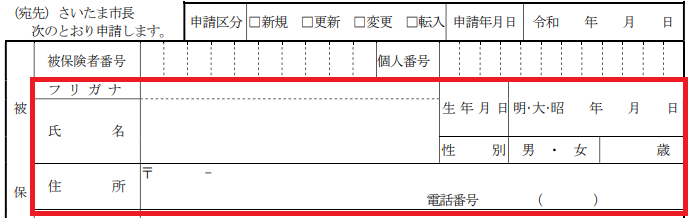 少々語弊がありますが、申請時に下記の「被保険者番号」と「個人番号(マイナンバー)」の記入は必要ありません。
